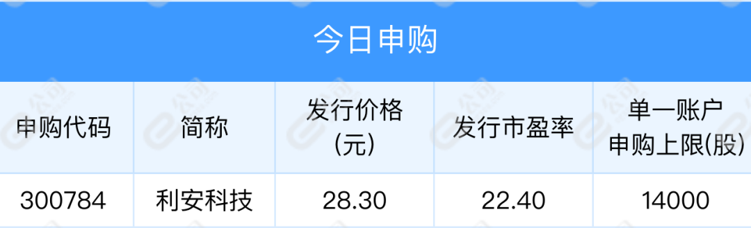 利安科技今日新股申购;